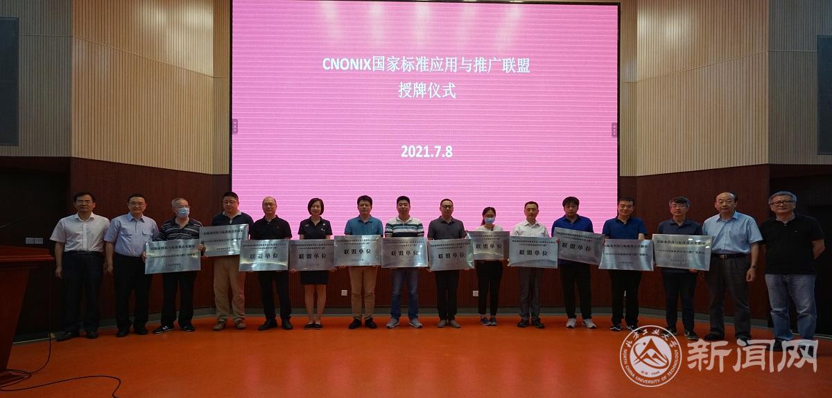 在实验室揭牌之际,实验室联合行业12家单位成立了“CNONIX国家标准与应用联盟”,科技处处长史运涛和首席专家为联盟各成员单位授牌。