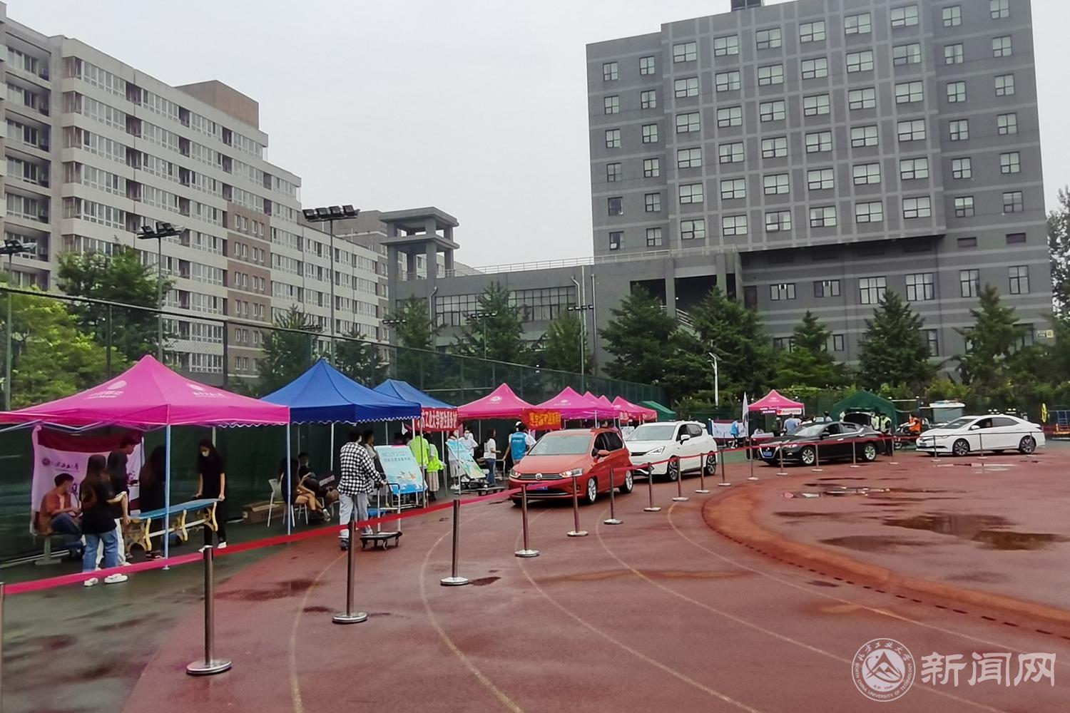 清晨,各学院和职能部门的迎新点就已经就位,老师、学生志愿者和后勤工作人员开始紧张忙碌起来,为迎接新同学步入新家做好准备。