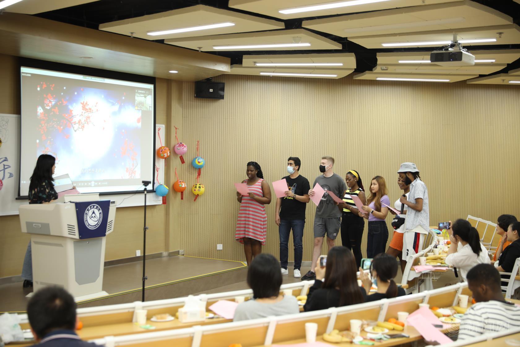 中秋节前夕,为了弘扬中华优秀传统文化,促进中外文化交流,引导留学生了解中国传统节日的文化内涵,感受中国传统节日的文化气氛,熟悉汉语、了解中国,国际学院于9月17日下午组织开展了主题为“海上生明月,天涯共此时”的中秋诗会活动。