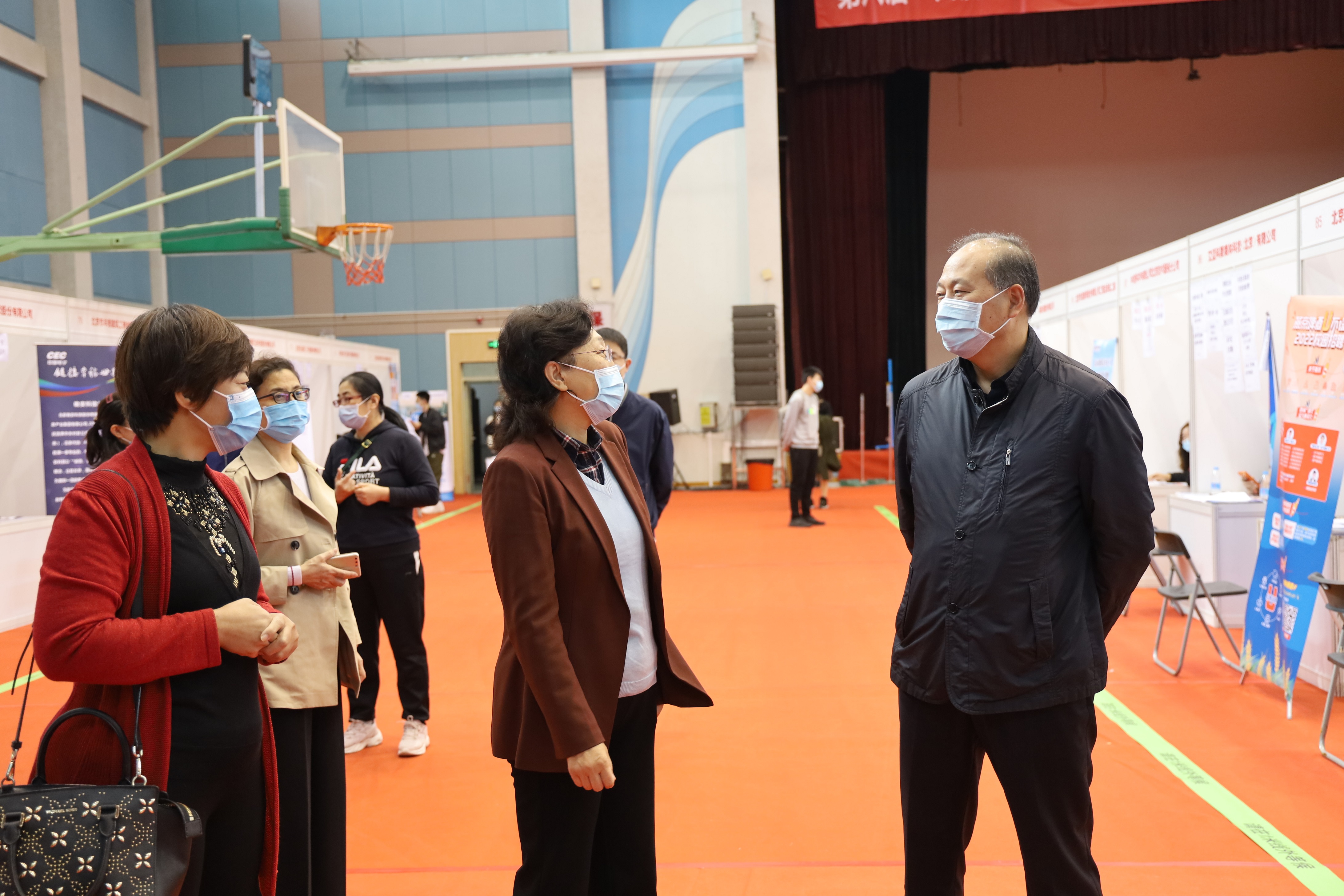 此前,匡校震一行还到米兰体育馆大型双选会现场进行了调研,了解学校招聘会筹备和组织、毕业生应聘、就业工作开展情况,对学校做好毕业生就业服务提出了要求。本场双选会邀请了124家用人单位参加,包括中国联通、大唐移动、中国新兴、中建八局、北京城建、燕京啤酒等68家大型央企国企,以及中芯国际、京东方、宇视科技等高新技术企业,计划招聘10311人,招聘岗位覆盖了学校大部分专业。双选会现场秩序井然,工作人员通过测温验码、控制流量、加强通风等手段,严格落实疫情防控要求。毕业生携带精心准备的求职材料,积极与用人单位交流互动,寻找适合自己的工作岗位。各学院领导和辅导员在现场指导毕业生求职,并与用人单位交流。