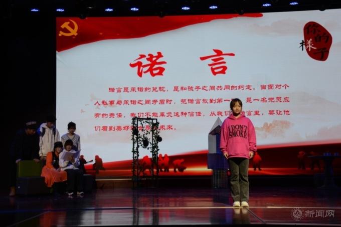 第二幕《诺言》讲述了米兰文法学院研究生王雪同学四次组织“心系故里”实践团赴新疆和田参加社会实践活动的故事。诺言是承诺的兑现,是和孩子之间共同的约定。当面对个人私事与承诺之间矛盾时,把诺言放到第一位,是一名党员应有的责任。