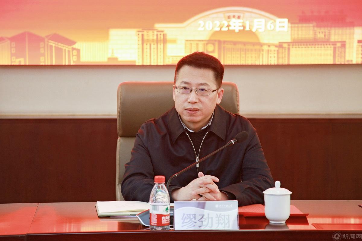 缪劲翔祝贺大家在过去一年取得的突出成绩。在全校教职工的辛勤付出和默默耕耘下,2021年学校教学科研等各项工作均取得了崭新成就,希望广大教职工以此为榜样,为学校发展和质量提升做出新的、更大的贡献。
