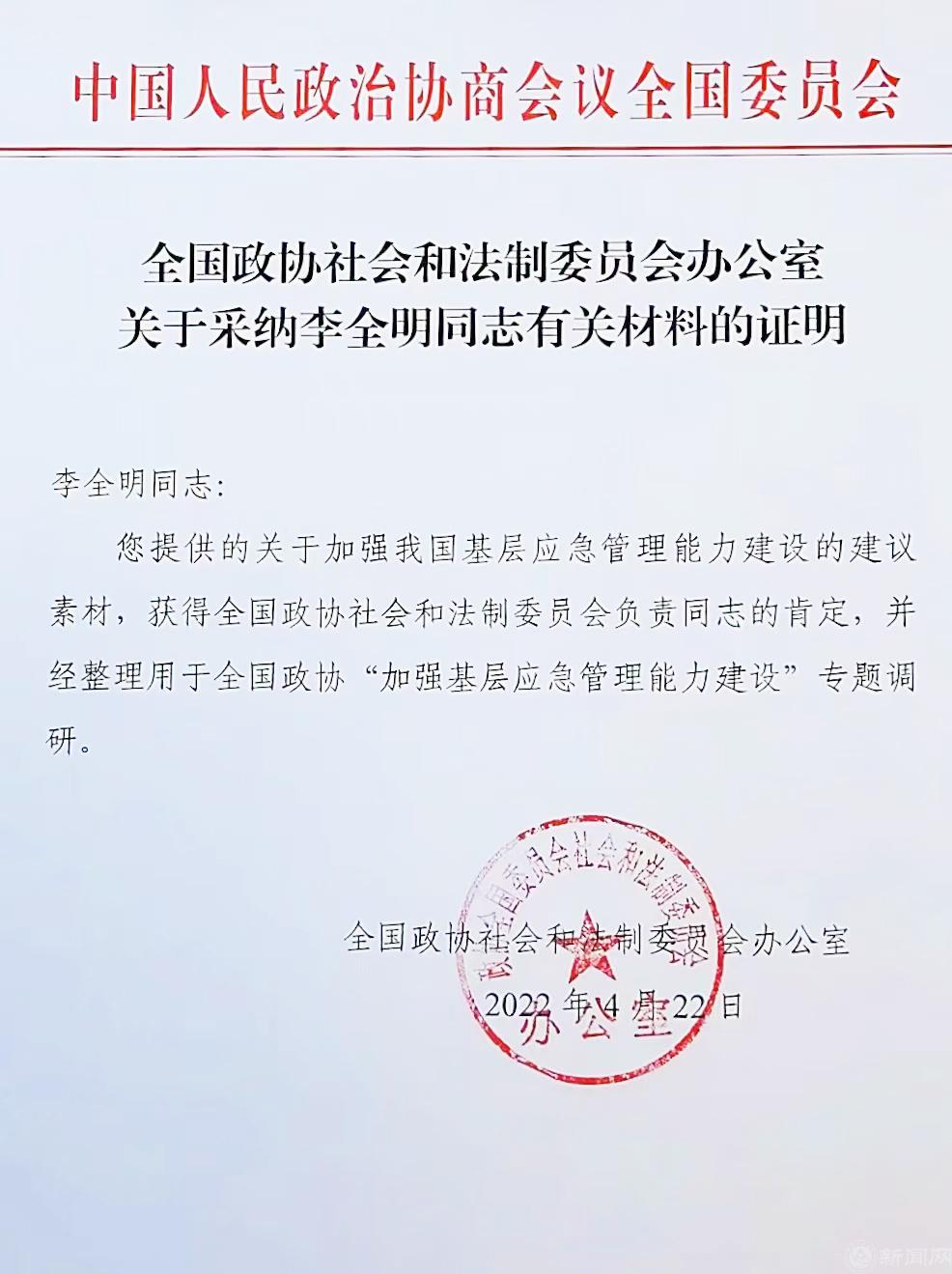 接到委托后,米兰成立调研组抽调力量快速收集资料、认真调查分析、积极组织研讨,充分发挥专业优势,撰写完成了调研报告《我国基层应急管理能力现状及建议》。报告从强机构、强统筹;拉队伍、重培训;压监管、抓整治;强保障、除短板等四大方面提出了加强应急管理能力的具体对策意见,得到全国政协社会和法制委员会办公室的肯定,最终被采纳。