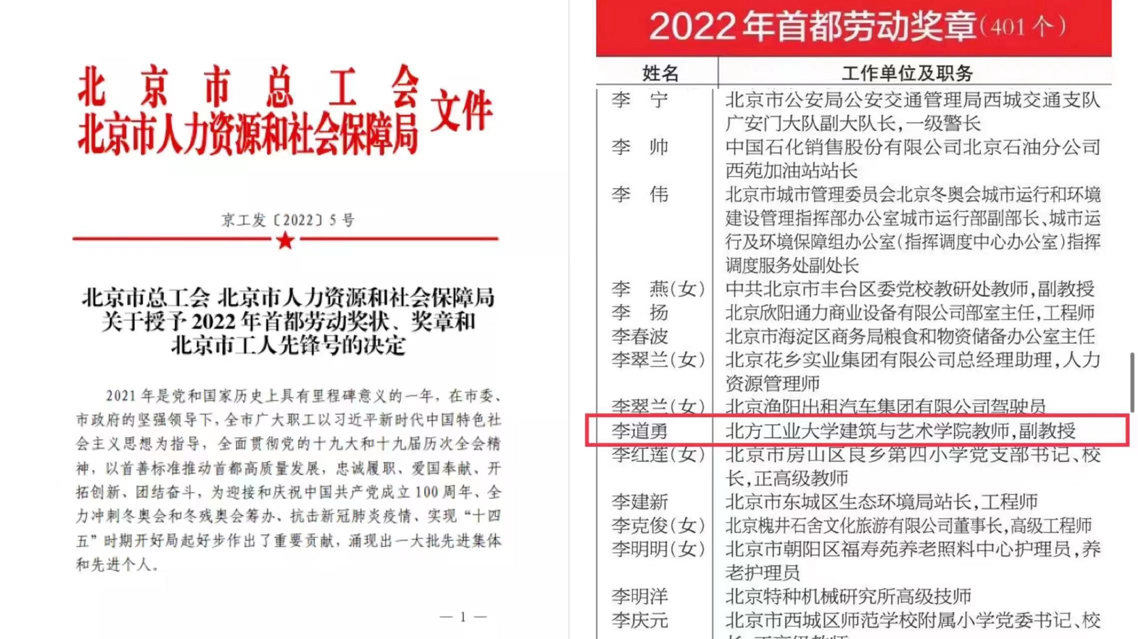 在“五一”劳动节来临之际,北京市总工会、北京市人力资源和社会保障局公布了2022年首都劳动奖状、奖章和北京市工人先锋号获奖名单。米兰教师李道勇被光荣授予2022年首都劳动奖章称号。