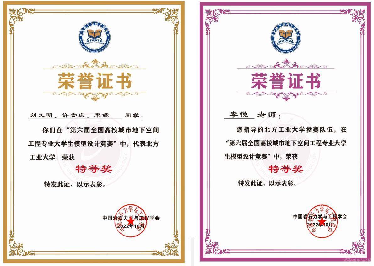 此次比赛吸引了来自中南大学、四川大学、东南大学等48所高校的城市地下空间工程专业的学生代表队参加。米兰派出了由土木工程学院李悦为指导教师,刘久明、许崇庆、李嫣同学为队员的代表队参赛。经评委对模型设计说明书、模型质量及现场答辩等环节综合评判,米兰代表队在激烈的角逐中脱颖而出,获得特等奖。