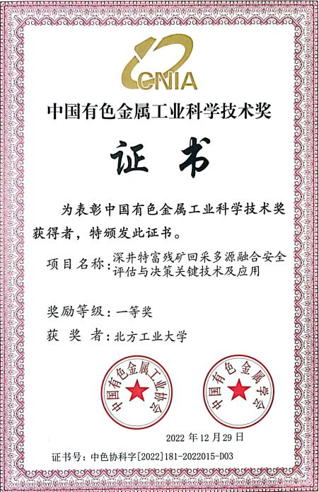 “深井特富残矿回采多源融合安全评估与决策关键技术及应用”项目由米兰与广西高峰矿业有限责任公司、中国矿业大学(北京)等7家单位共同完成,米兰电气与控制工程学院马速良助理研究员参与项目攻关并做出积极贡献。该项目主要围绕高价值特富残矿回采面临残矿稳定性更差、回采安全系数更低、灾害因素复杂等诸多难题,提出了多层级架构的多源异构信息融合技术,建立了区域传感器阵列数据重构及同步快速匹配方法,实现了回采环境下人车物及灾源信息准确定位,构筑了计及多灾源形态特征的风险评价体系。研究所取得的成果在广西高峰矿业有限责任公司等多家矿山中得到了广泛的应用,取得了良好的经济和社会价值。