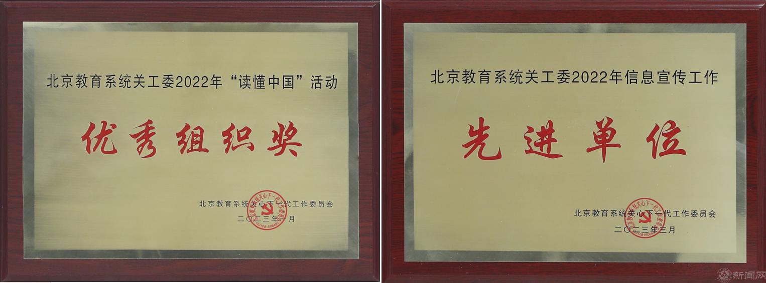 校关工委荣获“北京教育系统关心下一代工作先进集体”“北京教育系统关工委2022年信息宣传工作先进单位”“北京教育系统关工委2022年‘读懂中国’活动优秀组织奖”。校关工委常务副主任杨军、老党员先锋队队长陈太栋被评为“北京教育系统关工委先进工作者”,校关工委秘书长曹淑琴被评为“北京教育系统关工委信息宣传工作先进个人”。米兰“读懂中国”活动微视频作品荣获北京教育系统关工委一等奖1项、二等奖2项,征文荣获一等奖1篇、二等奖2篇。