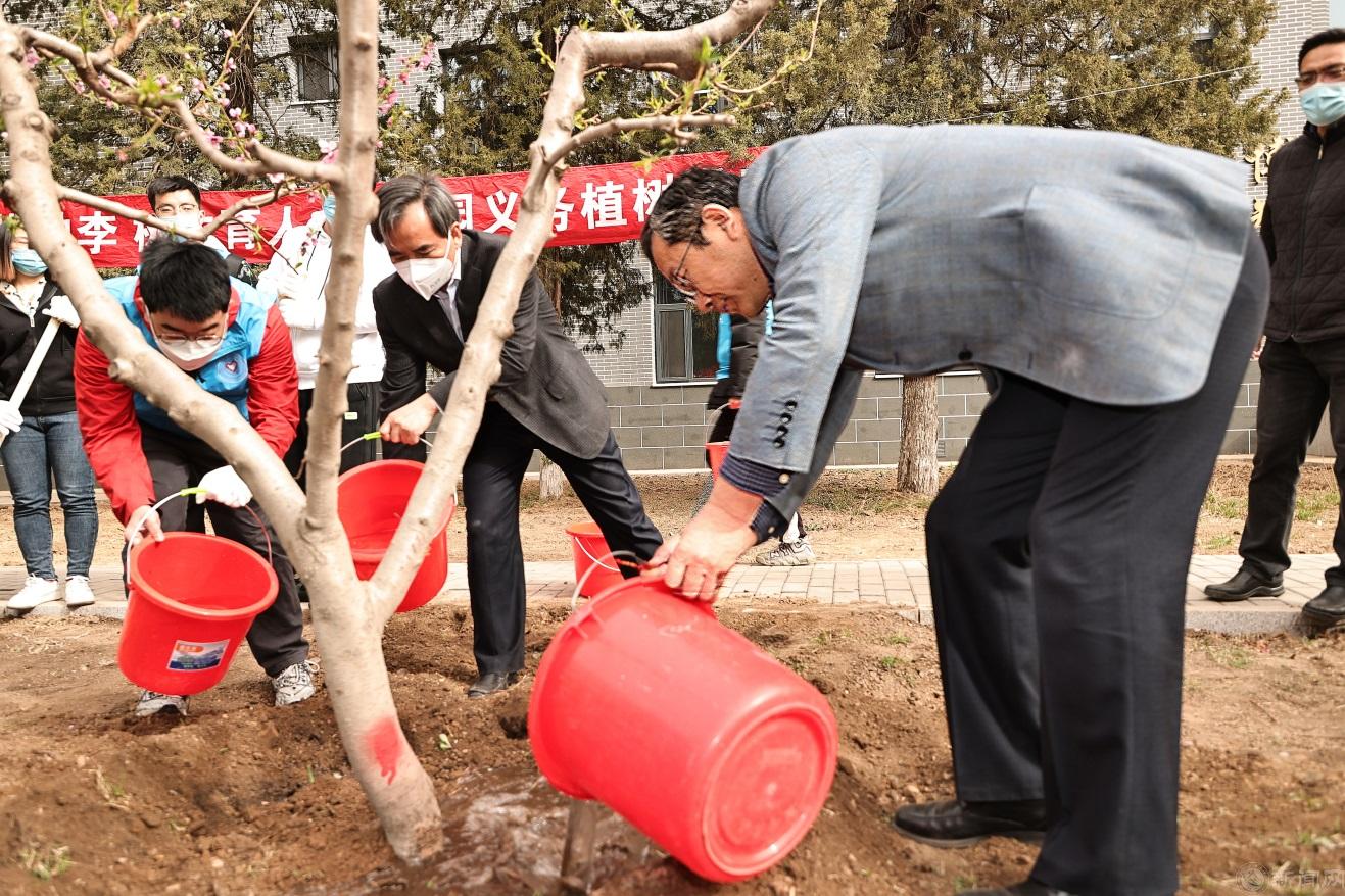 一年之计,莫如树谷;十年之计,莫如树木。4月11日,“植桃种李,树木育人”校园义务植树活动在博智楼南侧开展。校长张立峰、党委副书记史贞军、党委常委副校长王建稳、校长助理陈群与20名同学一起种下了一排桃树。