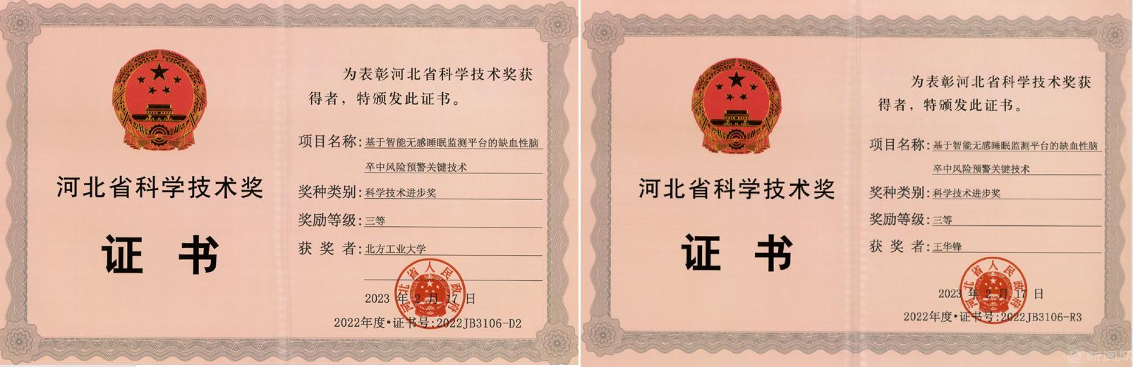 “基于智能无感睡眠监测平台的缺血性脑卒中风险预警关键技术”由信息学院王华锋副教授申报。该项目依托河北省重点研发计划“自然状态睡眠监测与脑卒中早期预警的智能平台研发及示范应用”,与河北省神经生物机能重点实验室、北京航空航天大学等研究机构一道合作构建了急性缺血性脑卒中风险状态早期、分层级人工智能预警模型,最终为脑卒中早期预警系统的实现提供了科学理论与实践的支撑。