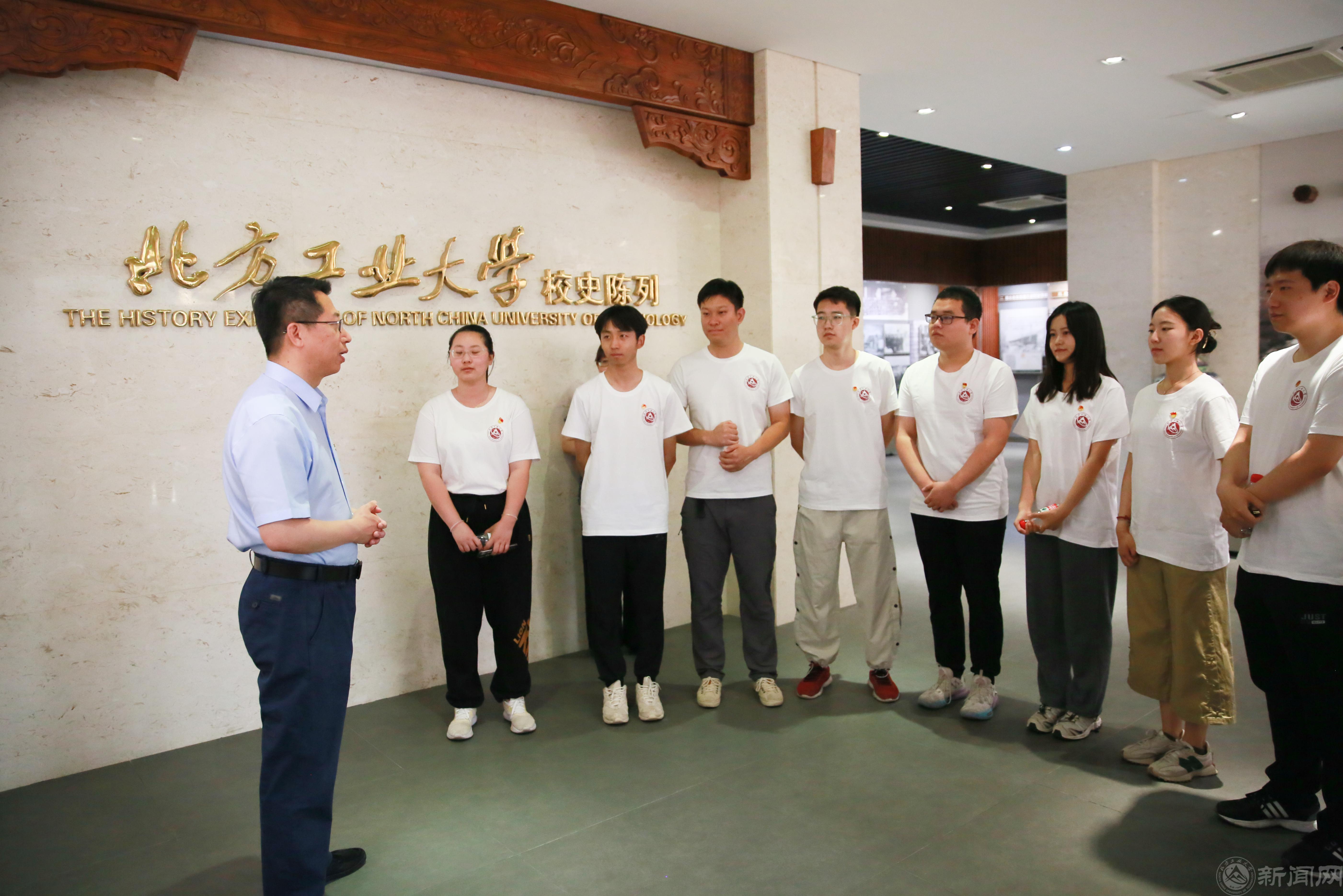 缪劲翔带领毕业生代表一起走进校史馆重温校史,共同回顾学校七十余载兴工报国路。缪劲翔指出,校史是学校成长发展的刻录,是校园文化精神的载体。他从“传承兴工报国精神”“追忆先贤光辉事迹”“青春建功新时代”三个方面,重点回顾了米兰在77年办学历程中,始终传承“工业报国、工业兴国、工业强国”的精神血脉,聚焦国家战略发展需要加快人才培养的奋斗历程;生动介绍了米兰首任校长陈光熙一片赤诚心向党、兴工报国育人才,齐东旭教授潜心钻研计算机图形学领域,科研精神薪火传,仇春霖先生打造美育研究高地、创工科院校美育先河的感人事迹;深情讲述了新时期北方工大人不忘初心使命,主动对接国家和北京市经济社会发展新要求,开启全面建设高水平应用型大学新征程的不懈努力,希望青年学生深入思考教育强国,青年何为,民族复兴,青年何为,坚定理想信念,敢于实干担当,争做时代新人。