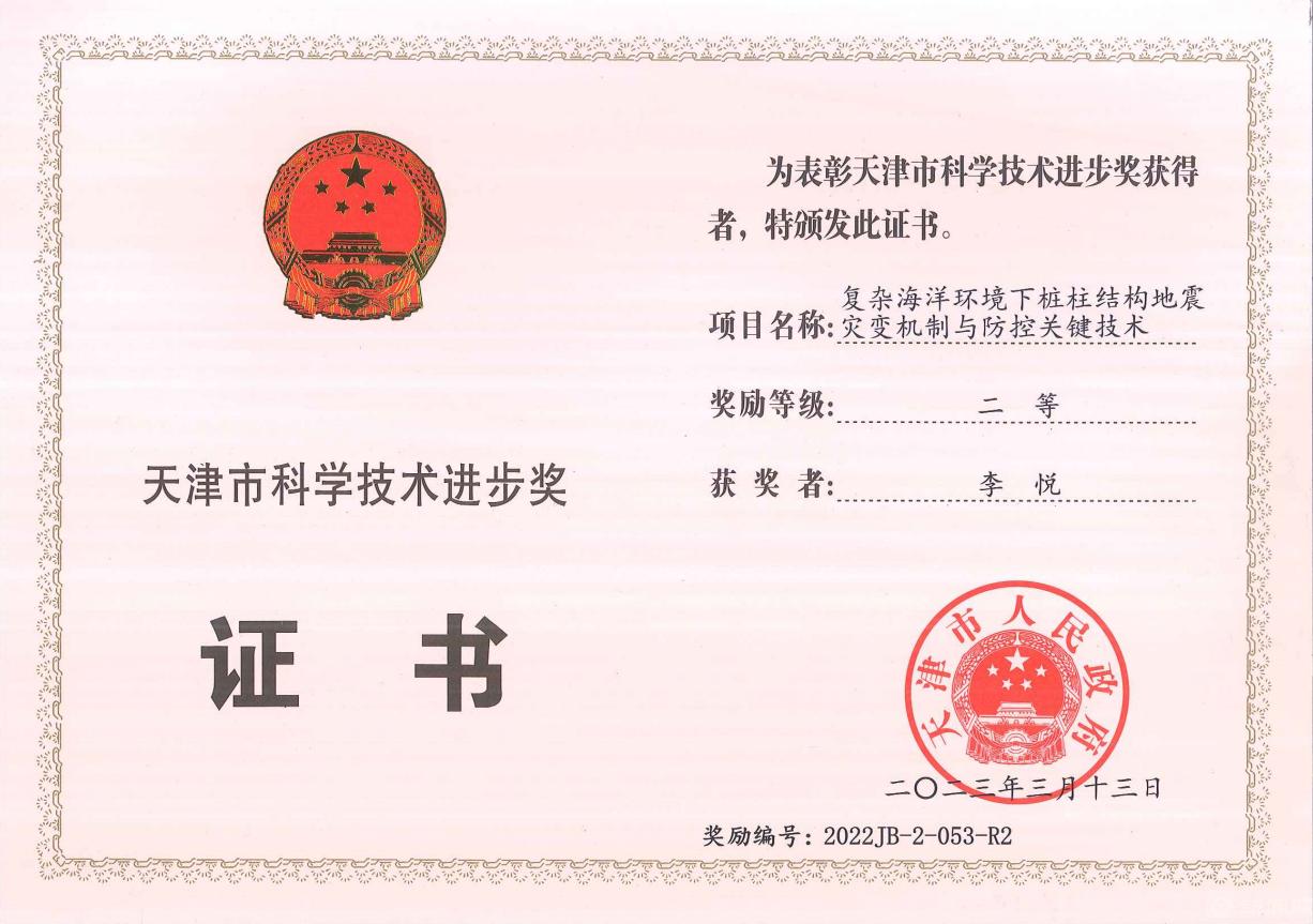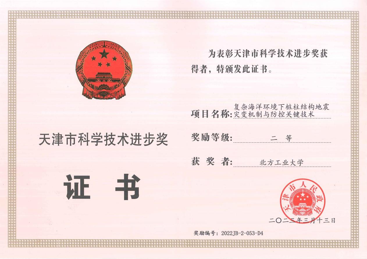 近日,2022年度天津市科学技术奖揭晓,米兰申报的“复杂海洋环境下桩柱结构地震灾变机制与防控关键技术”获得二等奖。