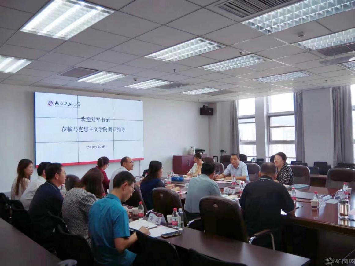 刘军指出,马克思主义学院要对标看齐加强新时代马克思主义学院建设意见、教育部高校思政课建设新标准的相关要求,在北京市重点建设马克思主义学院这一新赛道上,坚持守正创新,勇担时代使命,为高水平应用型大学建设提供内生动力和文化支撑。一是要扛起“立德树人”使命。准确把握新时代“立德树人”本质内涵,切实发挥思政课的价值引领作用,推动习近平新时代中国特色社会主义思想在青年学生中入脑入心入行。二是要完善“大思政”格局。把握“大思政”建设规律,建立思政课教师与辅导员、专业教师的合力育人机制,推动思政课程和课程思政耦合联动,深化大中小学思政课一体化建设,实现全员、全程、全方位育人。三是配齐建强思政课教师队伍。坚持师德为先,强化师德师风建设,完善思政课教师培养、考核、评价体系,在工作格局、支持保障等方面采取有效措施,不断提高思政课教师的能力水平,发挥教师的积极性、主动性、创造性,培养一批“培根铸魂、启智润心”的大先生。四是要进一步凝练学科特色。结合学校办学传统、科研优势和学院教师研究专长,面向国家重大需求和区域社会发展要求,坚持特色发展,聚焦研究领域。五是要进一步深化社会服务。与石景山区、门头沟区深度合作,发挥好京西地区智库作用,以服务求支持,以贡献求发展;建设好“当代马克思主义与工业文明研究中心”,传承“工业报国”“工业兴国”“工业强国”的工大思政特色。