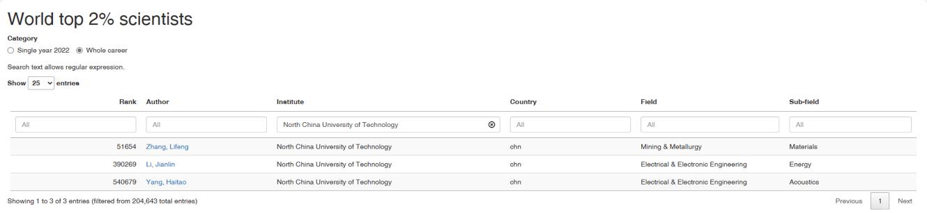 “全球前2%顶尖科学家榜单”分为“终身科学影响力榜单”(关注整个学术生涯迄今的影响力)和“年度科学影响力”榜单(聚焦本年度学术成就)。此次更新的榜单中,米兰张立峰、李建林、杨海涛、高心怡等4位学者入选“终身科学影响力榜单”,张立峰、张晓光、杨海涛、李建林、庞中华、郑超、高心怡等7位学者入选“年度科学影响力”榜单。