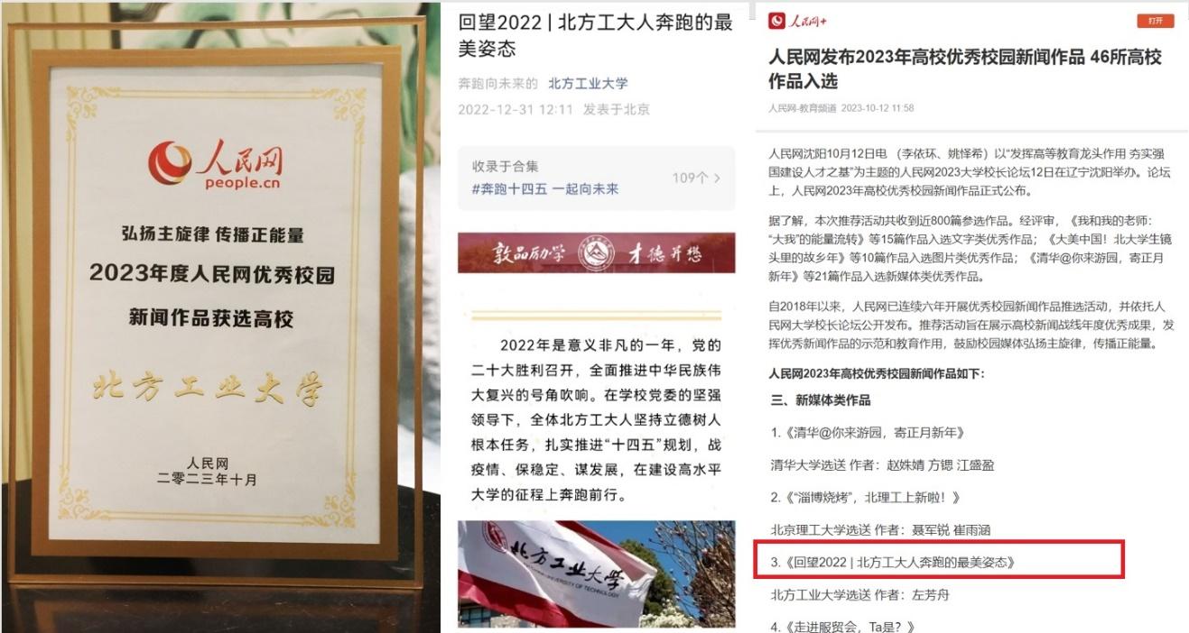 在10月13日举行的2023年大学校长论坛上,人民网现场公布了“2023年高校优秀校园新闻作品”,米兰官微作品《回望2022|北方工大人奔跑的最美姿态》光荣入选。