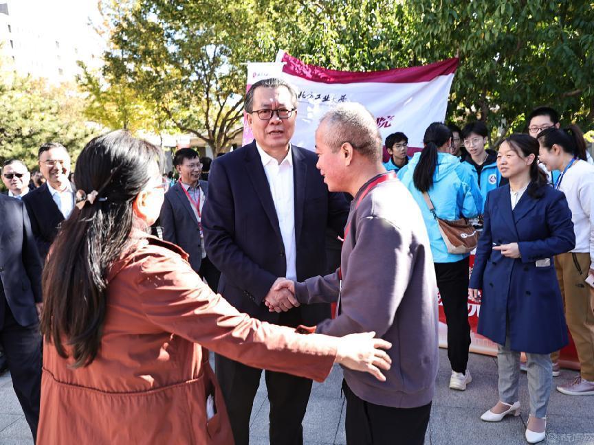 校党委书记刘军,党委副书记、校长张立峰,党委常委、副校长王建稳、王力,副校长卢晓斌来到报到现场,欢迎校友们回家,与校友进行亲切交流,共同畅谈北方工大的昨天、今天和明天。