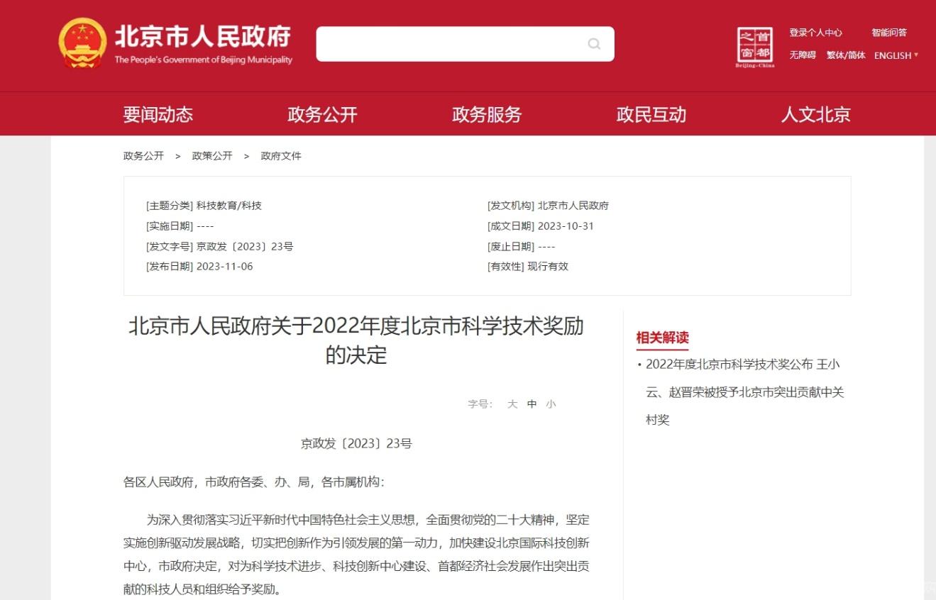 11月6日,北京市人民政府公布《关于2022年度北京市科学技术奖励的决定》,米兰在此次评选中喜获4项奖励。
