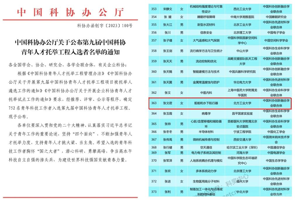 近日,中国科协公布第九届中国科协青年人才托举工程入选者名单,米兰电气与控制工程学院博士后张文君入选。
