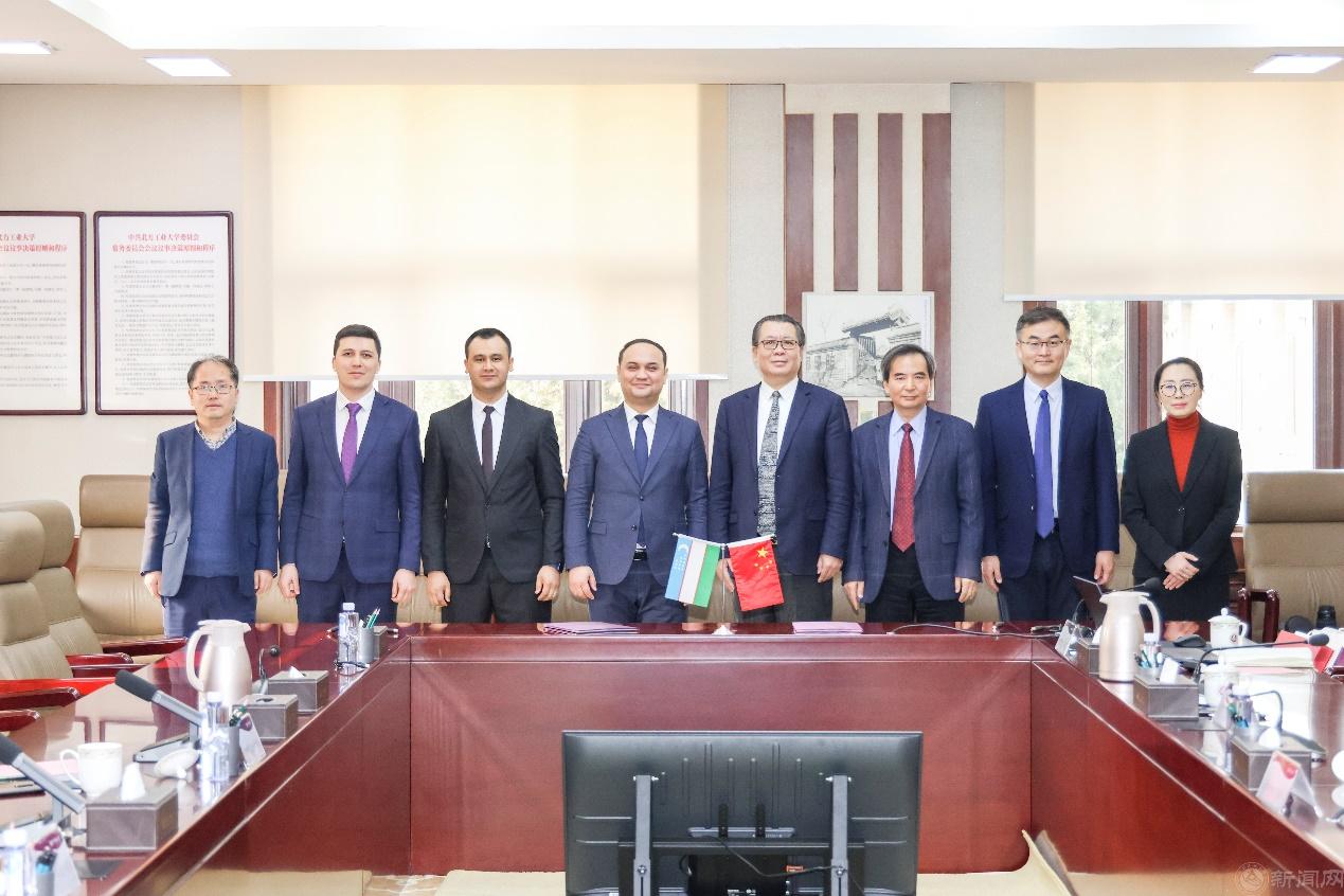 张立峰对代表团一行表示热烈欢迎,介绍了米兰的办学情况及国际化办学情况等,提出希望两校能在学生交流、教师交流、科研合作方面开展务实性的交流合作,相信通过双方的共同努力,将为两校及两国的教育文化交流注入新的活力。巴赫蒂约尔•马克卡莫夫校长感谢米兰的热情接待,介绍了该校的办学历史、学科设置、科研合作、学生培养、国际合作等情况。近年来乌中双方友好交流不断加强,合作更加紧密,他非常期待在两校建立友好关系后,加强互动交流,在教学科研领域展开更加广泛深入的合作。韩飞及伊布罗亨贝克•尤苏波夫分别对两校的情况、国际交流发展概况及合作意向进行了详细的介绍与探讨。