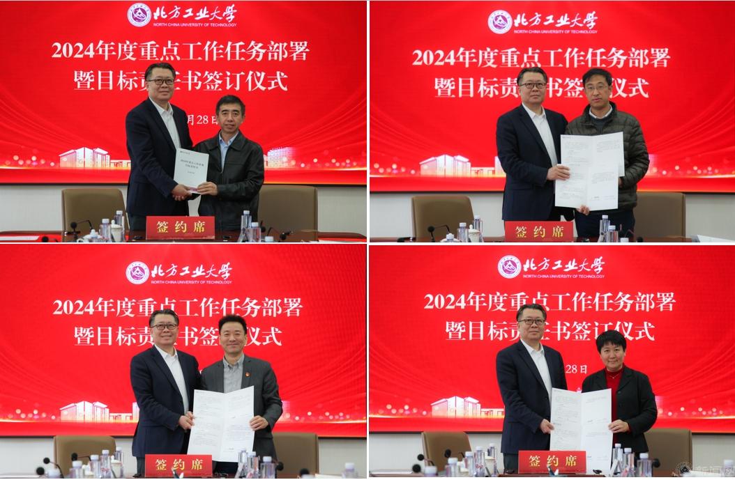 党委副书记、校长张立峰分别与信息学院、机材学院、建艺学院、土木学院、经管学院、文法学院、理学院等7个学院院长,以及人事处(教师工作部)、教务处、科研院(科技成果转化中心)、研究生院、学工部等5个职能部门负责人签订了工作目标责任书。
