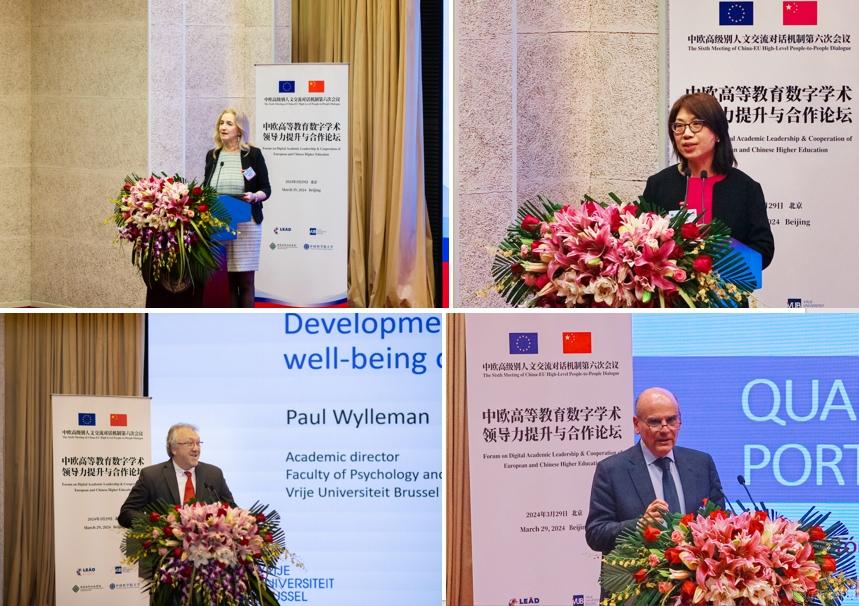 论坛发言人还包括LEAD 学术联盟主任、布鲁塞尔自由大学教授朱畅、布鲁塞尔自由大学心理与教育学院学术事务主任保罗·维勒曼(Paul Wylleman)、国家教育行政学院教务部副主任王敬红、葡萄牙高等教育认证和评估机构董事会主席安东尼奥·伦达斯(Antonio Rendas)等,他们先后就LEAD 学术联盟概况、欧洲高等教育教师发展、大学院长角色行成、葡萄牙高等教育质量监管等议题做了主旨报告。本次论坛聚焦于“数字化学术领导力”,促进了中欧高等教育领域学术领导者之间的交流与对话,在信息共享与高等教育合作等方面起到积极作用。
