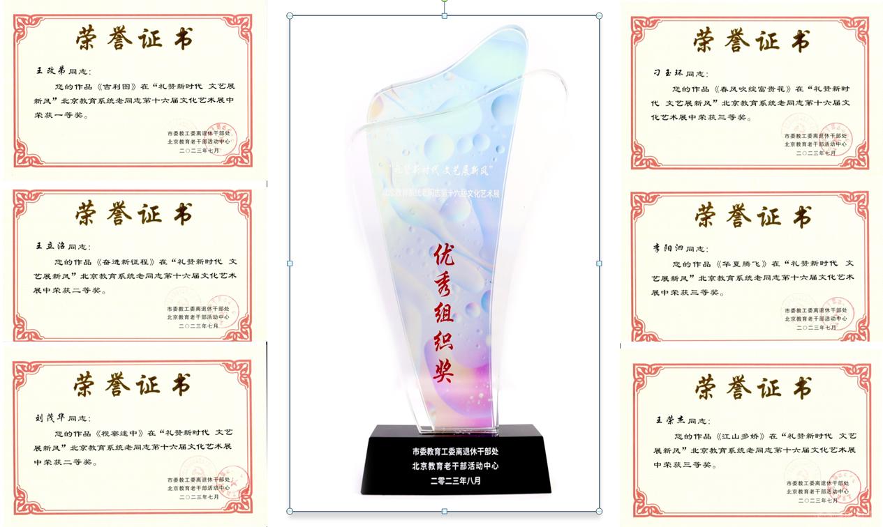 在“礼赞新时代文艺展新风”北京教育系统老同志第十六届文化艺术展活动中,米兰报送的15件参展作品全部获奖,其中王改弟老师的苏绣《吉利图》获一等奖,2件二等奖,3件三等奖,9件优秀奖。详细获奖情况见附件。米兰荣获优秀组织奖。