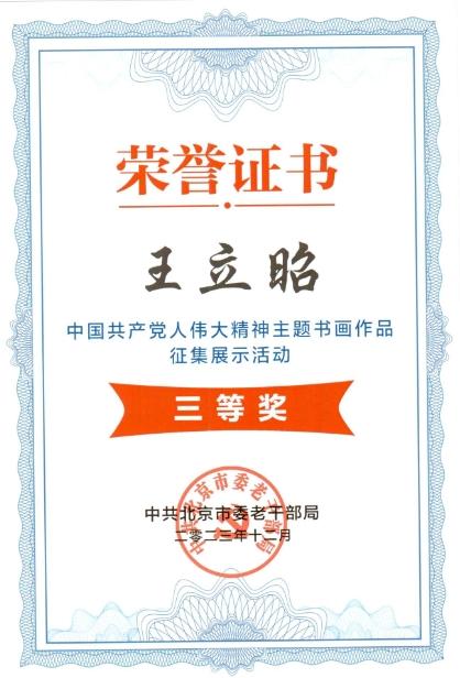 在北京市委老干部局举办的中国共产党人伟大精神主题书画作品征集展示活动中,米兰退休老同志王立昭、刘金栋荣获三等奖。