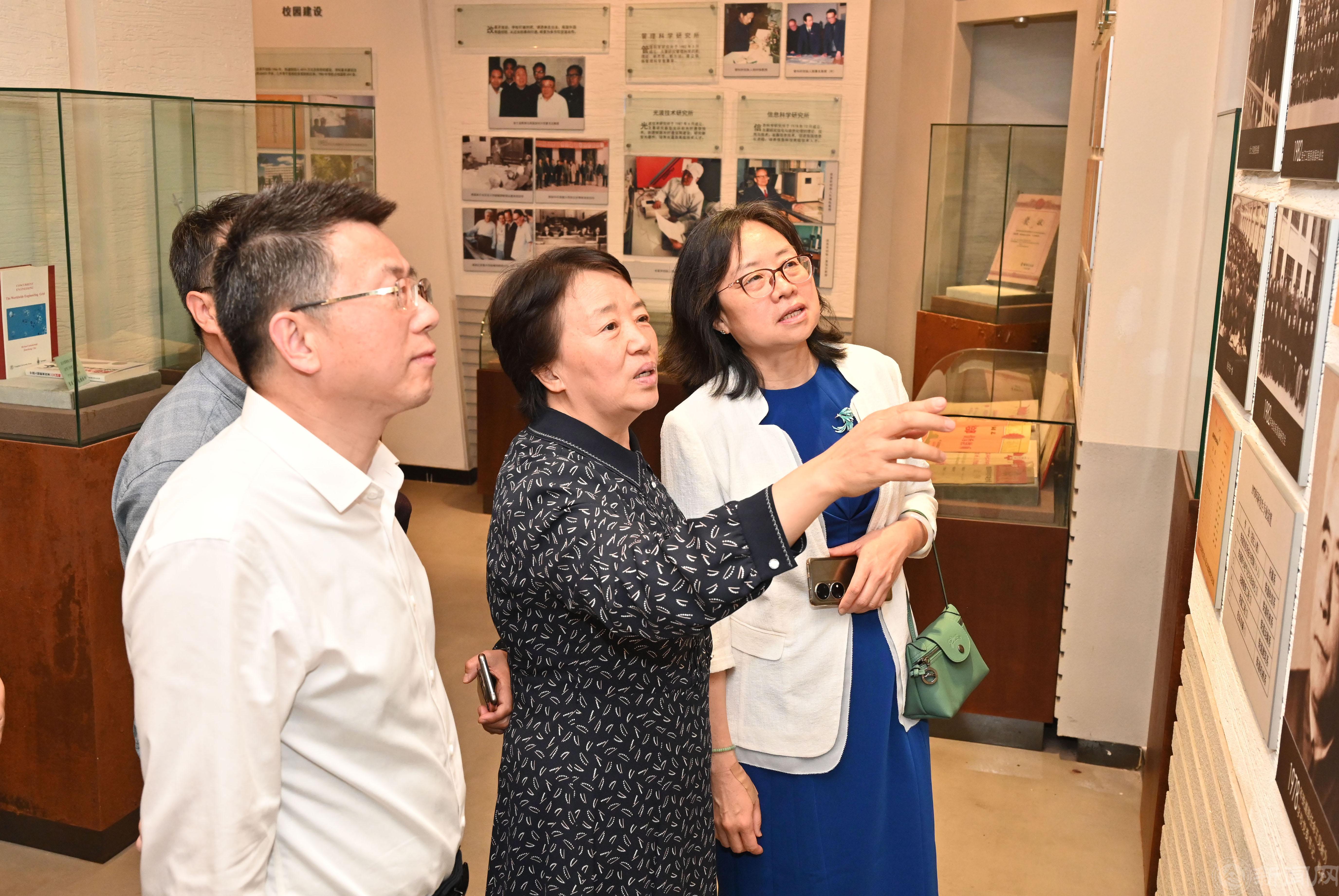 座谈结束后,田红芳一行在文海涛的带领下,参观了北京交通大学校史博物馆,全面了解北京交通大学的发展历史,细致了解校史馆的建设情况,重点对校史馆建设的整体策划、展陈设计、场馆建设等进行深入考察、现场交流。调研组还参观了北京交通大学校园文化景观,为米兰环境育人工作汲取经验。