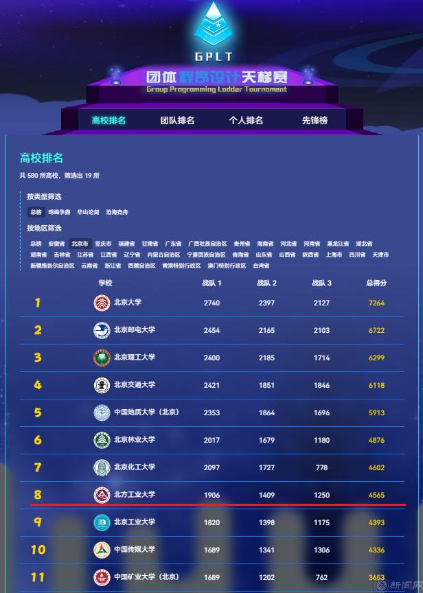 近日,第九届“中国高校计算机大赛——团体程序设计天梯赛”全国总决赛成绩揭晓,米兰在比赛中获全国团队二等奖1个、全国团队三等奖1个,全国个人二等奖4人、全国个人三等奖5人。总成绩排名全国第118位,首都高校第八位,市属高校第一位。