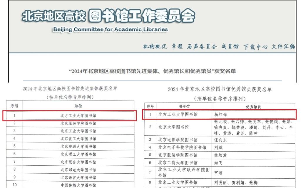 近日,2024年北京地区高校图书馆工作委员会评优活动结果揭晓,米兰图书馆在活动中获评“北京地区高校图书馆先进集体”,杨红梅老师获评“北京地区高校图书馆优秀馆员”。