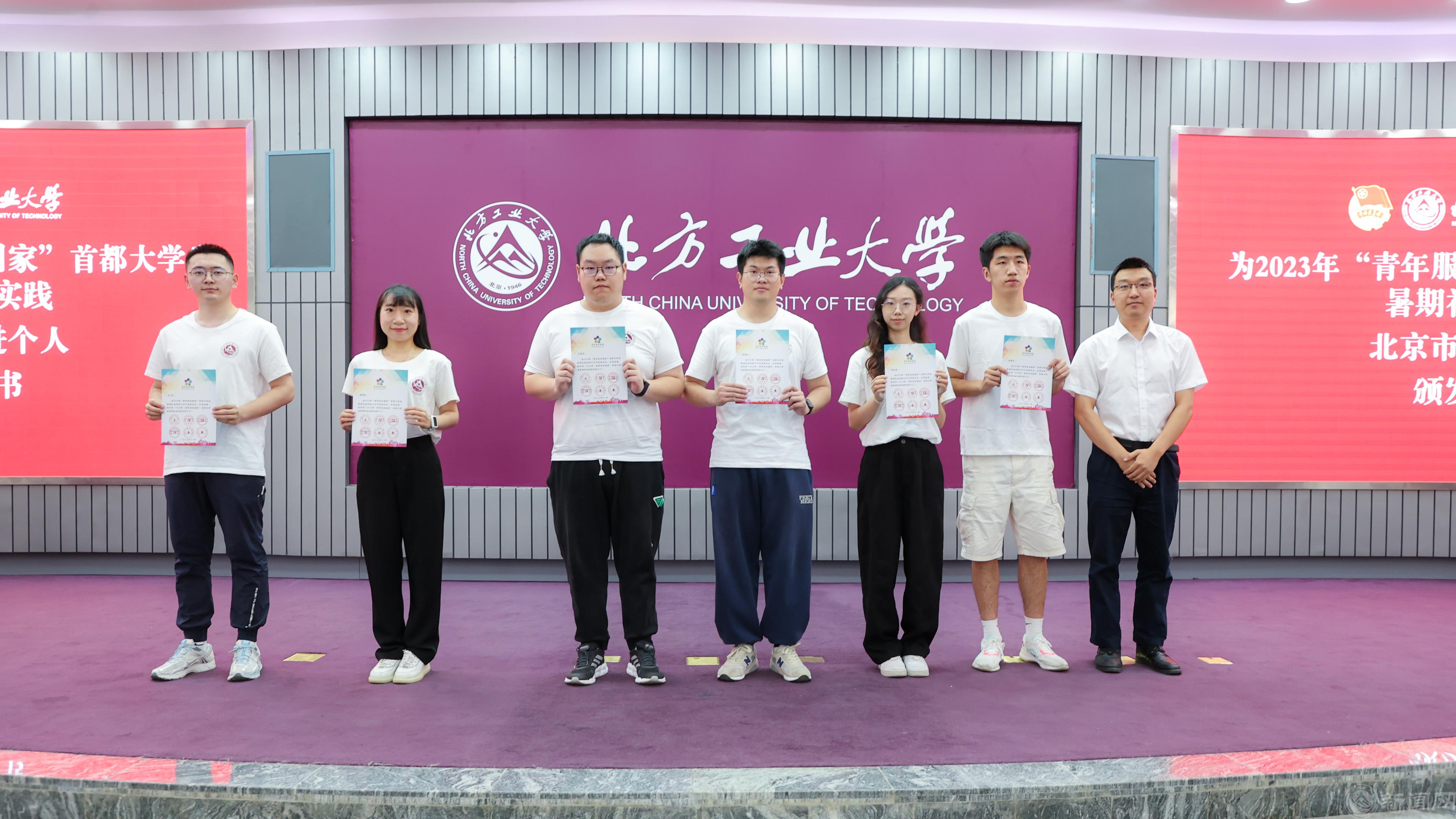 2023年米兰共有10支实践团队、7名教师和6名同学分别荣获“青年服务国家”首都大学生暑期社会实践北京市优秀团队、先进工作者、先进个人,与会领导为获奖团队和个人颁发了荣誉证书。杨超介绍了米兰2024年大学生暑期社会实践工作的总体思路和安排,高国伟为各学院2024年大学生暑期社会实践团授旗。