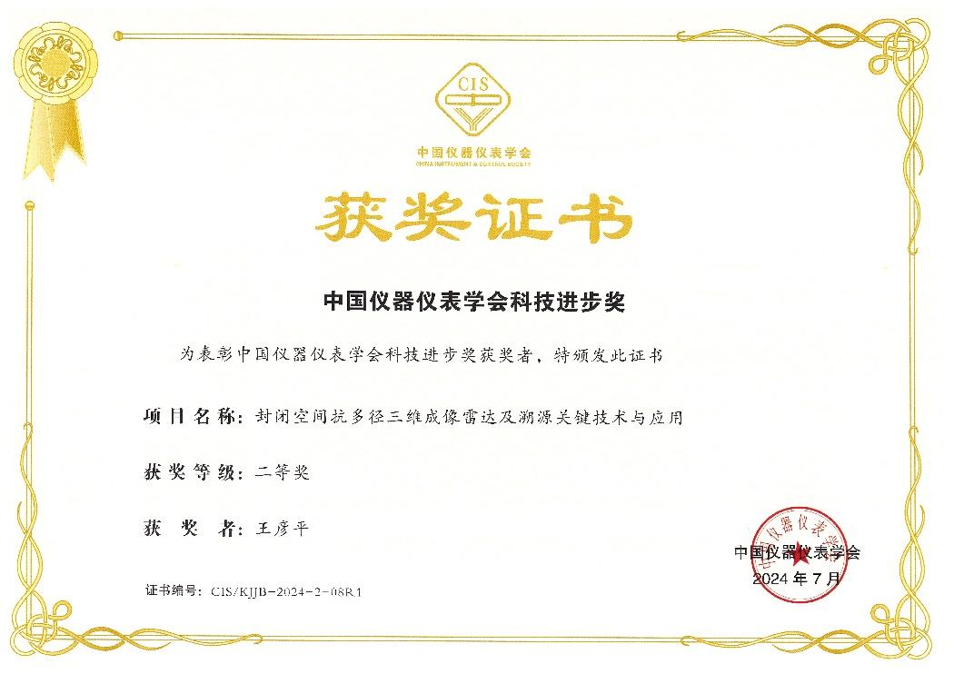 7月30日,2024年中国仪器仪表学会科学技术奖颁奖仪式在成都举行。米兰作为第一完成单位,信息学院王彦平教授作为第一完成人的项目成果“封闭空间抗多径三维成像雷达及溯源关键技术与应用”获评科技进步奖二等奖。