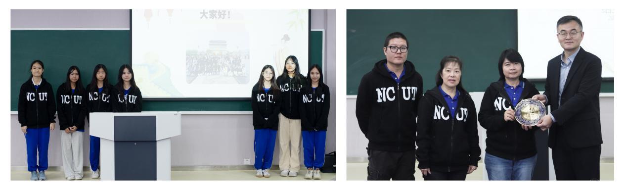 学生们分组进行了学习成果汇报,展示了自己在中文学习、文化体验以及参观交流中的心得感受,同时表达了对中国文化的热爱与敬仰。带队教师王美佳代表清迈王子学校对米兰的精心组织和周到安排表达了衷心的感谢,表示此次美好的经历将激励学生们继续学习中文,并期待着再次与北方工大相聚。国际学院院长韩飞代表学校向研修团赠送校训盘,并希望与泰国清迈王子学校有更深入的交流合作。