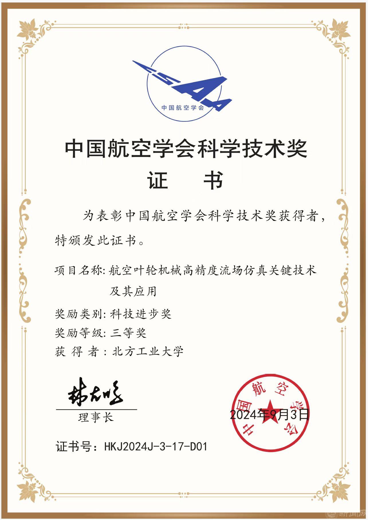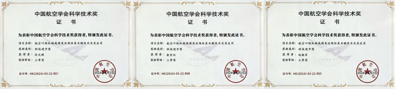10月22日,2024年中国航空学会科学技术奖颁奖仪式在四川成都举行。米兰作为第一完成单位,机械与材料工程学院闫文辉作为第一完成人,赵振军、俞宗汉作为核心成员申报的成果“航空叶轮机械高精度流场仿真关键技术及其应用”获评科技进步奖三等奖。