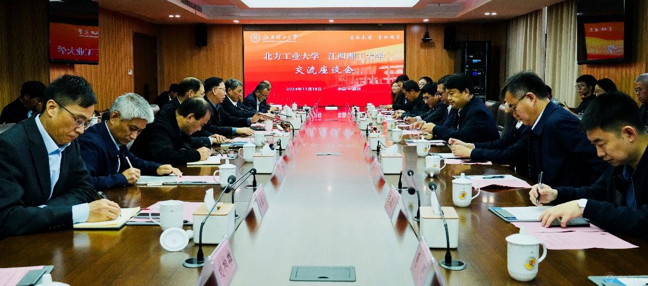 学校办公室、发展规划与学科建设处、教务处、科学技术研究院(科技成果转化中心)、研究生院、校友工作办公室、机械与材料工程学院、储能科学与工程学院等相关负责人、师生代表,江西理工大学相关职能部门和学院负责人参加座谈交流。