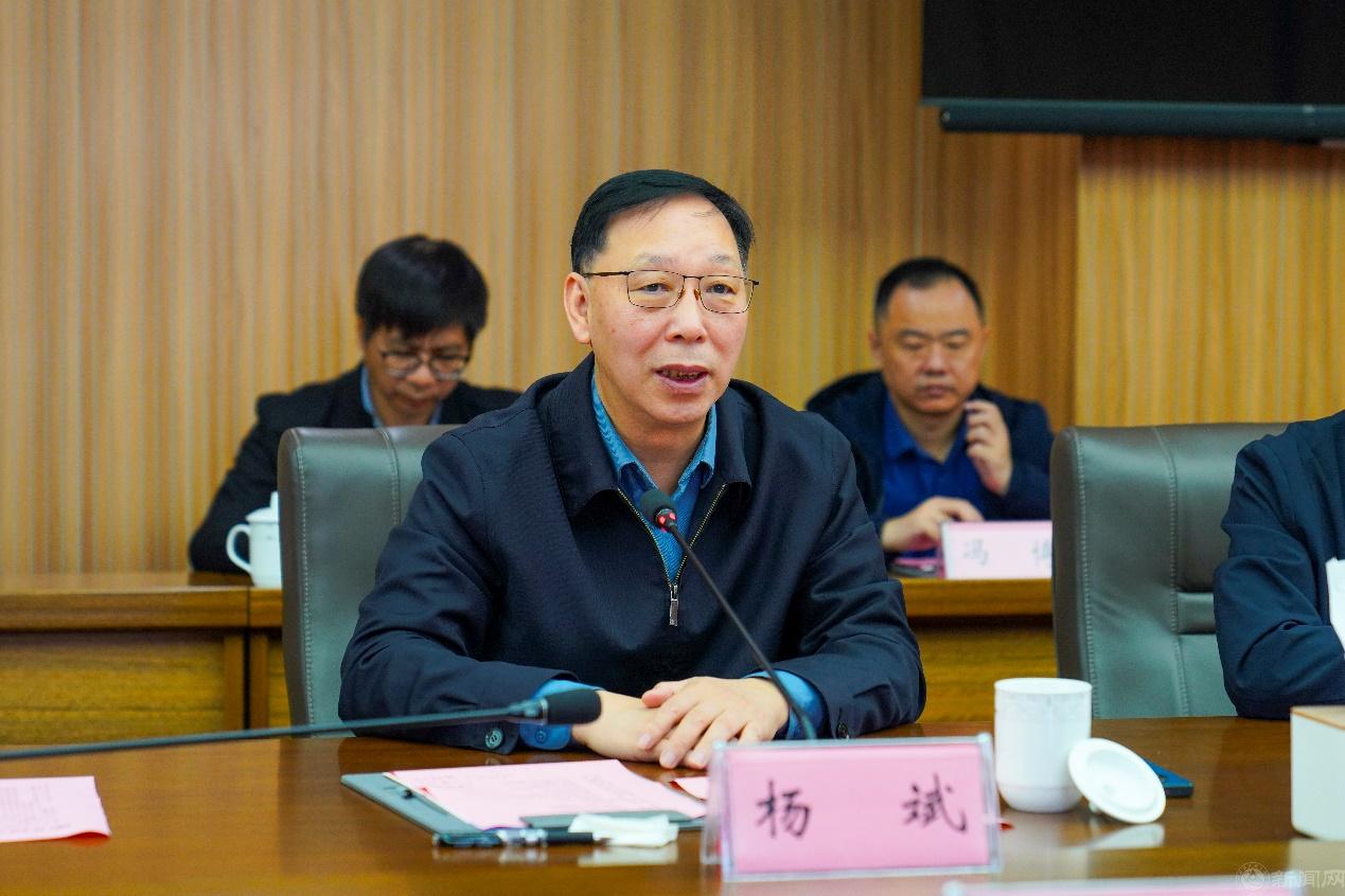 杨斌对张立峰一行的到访表示欢迎,代表江西理工大学对学校长期以来的关心支持表示感谢。他从办学定位、综合实力与社会影响力、学科建设、科研平台、生源质量等方面介绍了江西理工大学近年来取得的突出成就。他表示,两校同根同源,希望结合双方优势,在人才培养、学科发展、科研创新等方面共同开展深度合作,为服务国家战略需求和地方经济社会发展贡献力量。