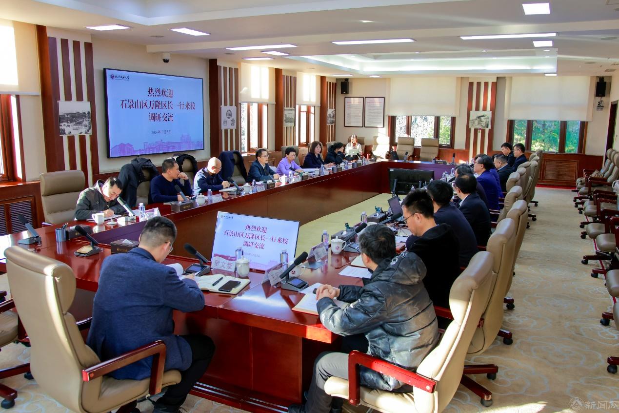王力介绍了米兰milan官方网站的总体情况,特别近三年“四新”发展取得的成就,王建稳、栗苹、卢晓斌、李全明介绍了学校研究生教育、学生实习实训、教育综合改革、校地合作、招生就业、数字化融合、科学研究、科技成果转化等工作的开展情况,并提出加强与石景山区深化合作的建议。