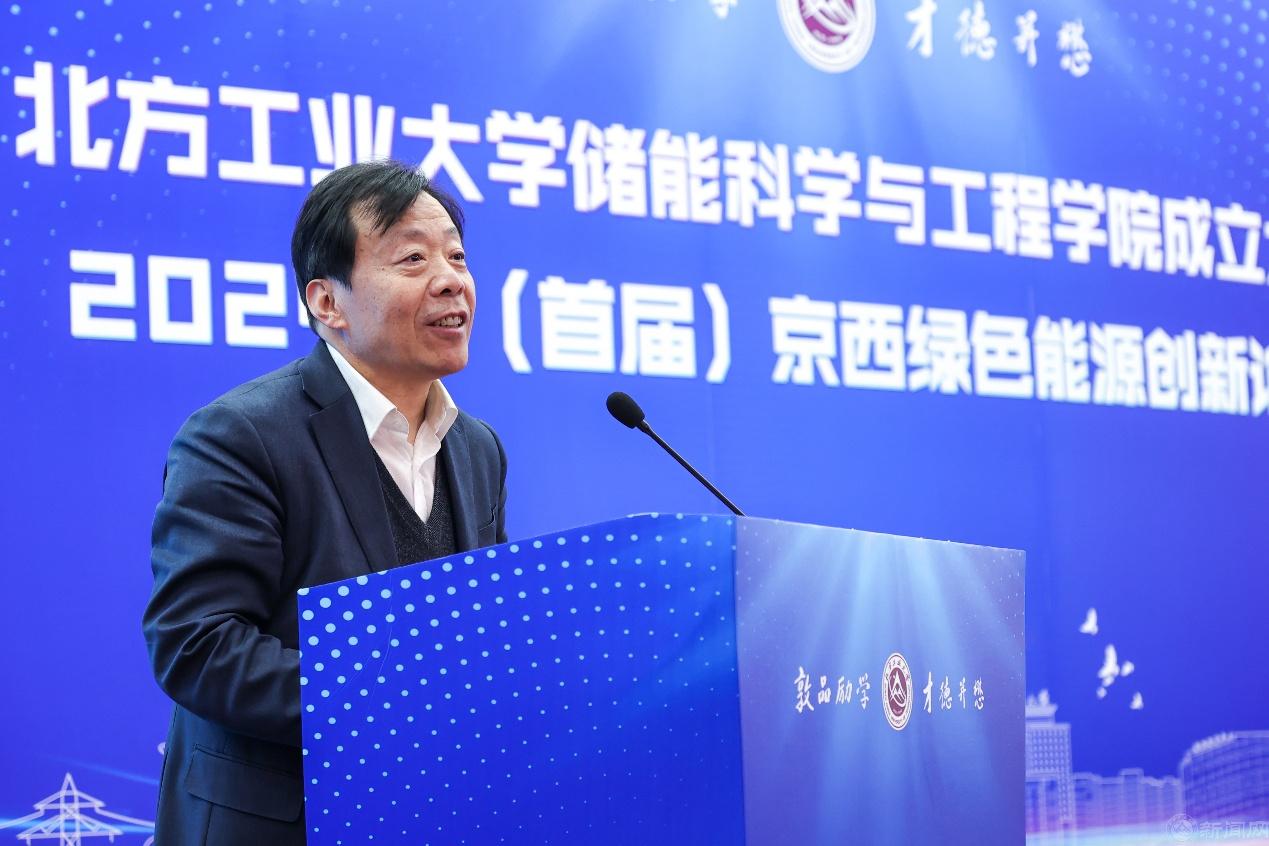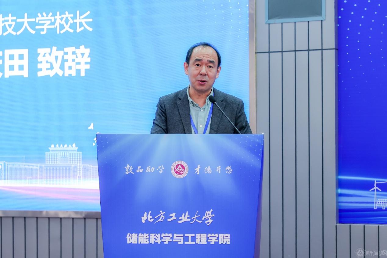 张立峰在成立大会上致辞。他回顾了学校的发展历史,指出自1978年兴办本科以来,学校师生不断适应国家和北京市发展需要,推动学科转型升级,使“老工科”赋予了“新内涵”,开出了“新花朵”。特别是近三年来,学校步入发展 “快车道”,实现了“新人才”“新学科”“新博士点”“新校区”的“四新”发展,师生对学校未来发展充满信心。张立峰强调,成立储能科学与工程学院是学校顺应时代发展潮流,响应国家战略需求,培养高素质储能科学与工程人才,推动储能技术进步和产业发展的重大举措。学校将以储能科学与工程学院为抓手,整合校内外优质资源,打造一流的储能交叉学科研究平台,推动储能科学与工程领域的学术交流和技术创新,为我国储能产业的发展贡献智慧和力量,为服务首都高质量发展、推动我国能源革命和可持续发展做出应有的贡献。