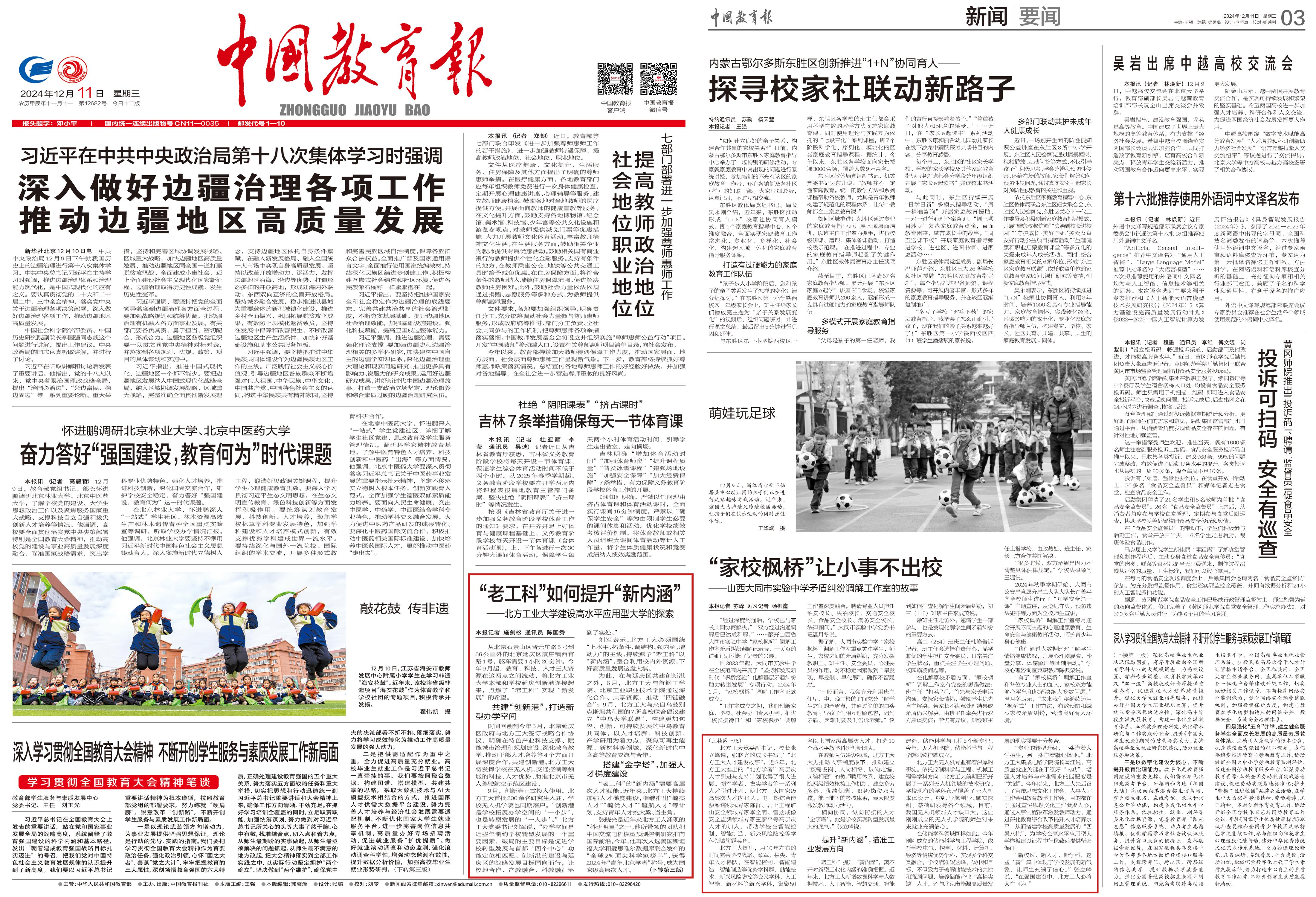 2024年12月11日,《中国教育报》在头版和第三版以《“老工科”如何提升“新内涵”——米兰milan官方网站建设高水平应用型大学的探索》为题,报道了米兰顺应高等教育改革潮流,紧扣“上水平、拓条件、调结构、强内涵、增动力”主线,推动传统工科院校转型升级,实现新校区、新人才、新学科、新博士点“四新”发展的生动实践。