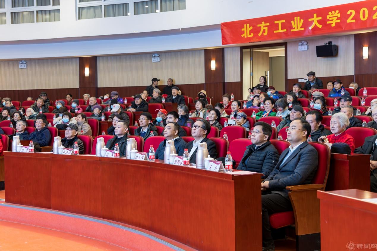 刘军在会上作热情洋溢的新年致辞。他代表学校党委向为学校发展贡献力量的离退休老同志致以新年的问候和诚挚的感谢。他表示,2024年是北方工大近八年历史上不平凡的一年,全体师生奋发图强,聚精会神谋发展,团结一致做贡献,做成了很多过去没有做成的大事。我们围绕“兴工报国”的主题讲好大思政课,谋划学校80年校庆,凝练工大精神,弘扬工大传统,校园文化厚重的底蕴有了新内涵,离退休党委积极作为,取得了令人骄傲的成绩。展望2025年,我们在党中央发出教育强国精神的号召下,还有很多工作要做,学校正处于发展的关键时期,处于攻坚克难谋跃升的重大机遇期,要抢抓机遇实现高质量发展。他衷心期望老同志们老有所乐、老有所养、老有所为,以自己的方式为学校发展贡献“银发力量”,衷心希望老同志们在新的一年里身体健康、平安吉祥,衷心祝愿北方工大的明天会更加美好。