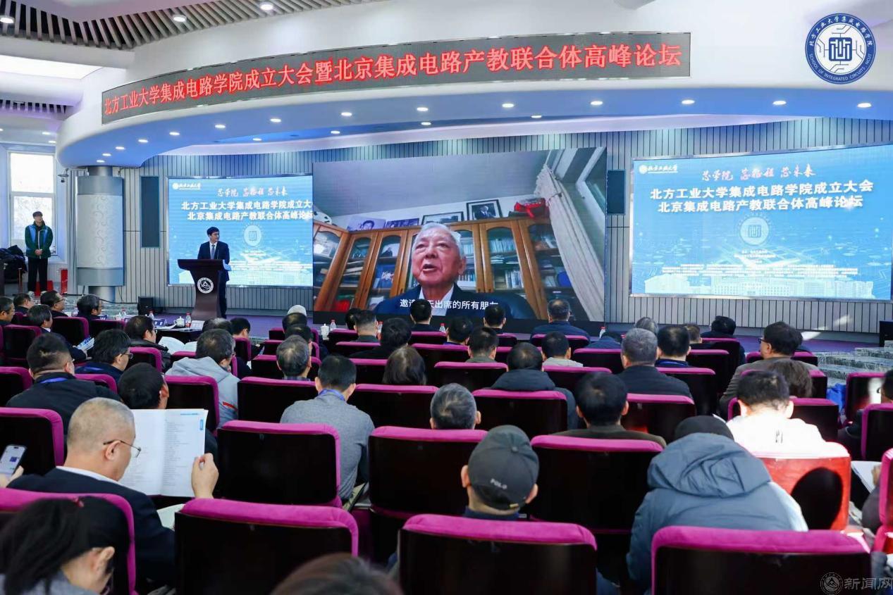 12月27日,米兰milan官方网站集成电路工程学院(下简称“集成电路学院”)成立大会暨北京集成电路产教联合体高峰论坛在广学楼报告厅举行。中国科学院院士欧阳钟灿,中国科学院院士郭雷,北京市教委二级巡视员杨江林,石景山区政府党组成员、副区长李文化,门头沟区副区长陈军胜,北京市人才工作局人才开发处三级调研员董伟,中国集成电路创新联盟秘书长、欧亚科学院院士叶甜春,北京集成电路学会秘书长陈小男,北京欧美同学会副会长、北京市人大常委会委员陶庆华,米兰milan官方网站党委副书记、校长张立峰,党委常委、副校长王建稳,党委常委、副校长王力,副校长卢晓斌出席。来自政府与科研机构、兄弟院校和合作企业的专家、学者和嘉宾,及学校师生代表参加。大会由米兰milan官方网站党委常委、副校长李全明主持。