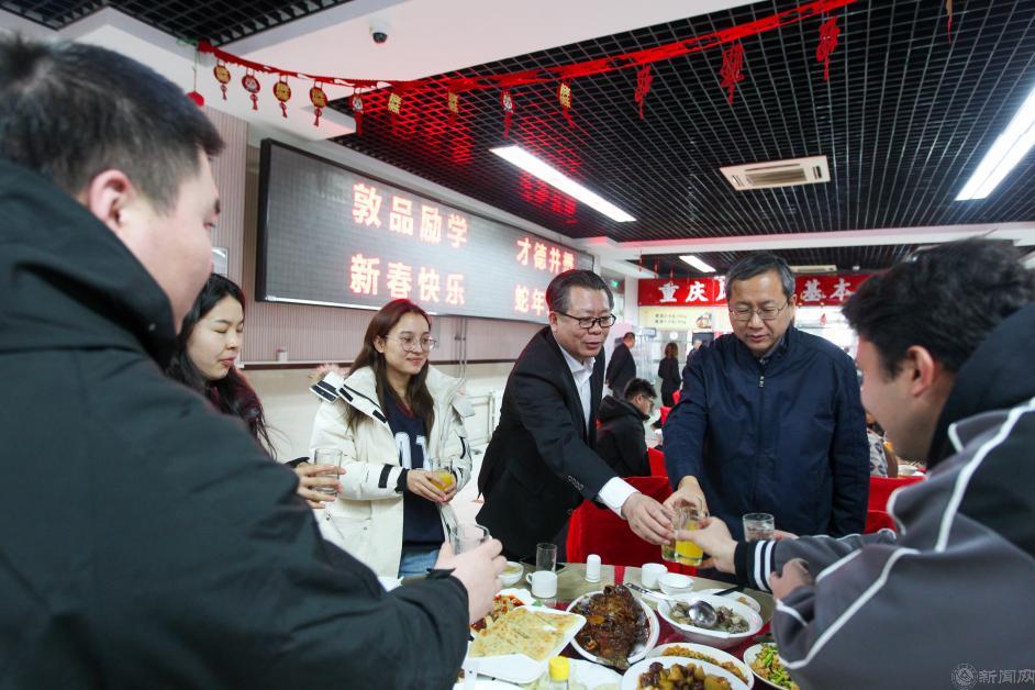 座谈结束后,张立峰、史贞军还与留校学生共进午餐,共享新春“家宴”。