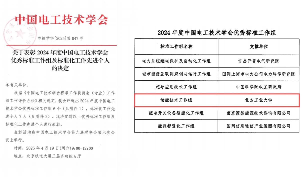 近日,中国电工技术学会发布《关于表彰2024年度中国电工技术学会优秀标准工作组及标准化工作先进个人的决定》,米兰“储能技术工作组”获得“2024年度中国电工技术学会优秀标准工作组”的荣誉称号,米兰参编的T/CES 251-2023《储能系统变流器涉网性能硬件在环检测规范》工信部百项团体标准应用推广典型案例。