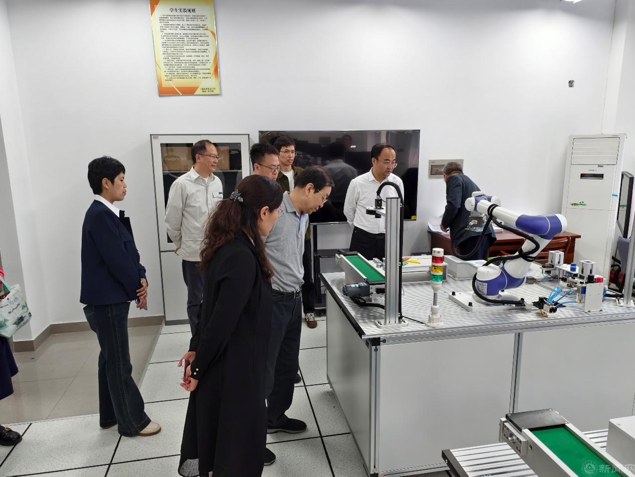 4月10日上午,调研组来到上海第二工业大学,参观了智能制造工厂实验室和能源与分析测验中心。座谈会上,上海第二工业大学副校长白建峰介绍了上海第二工业大学“企业出题、校企共答、市场阅卷”的闭环育人机制,“一核双元三融四方五协六共”的立体化人才培养体系,“工学交替-模块化-项目制”进阶式培养,“进-评-聘-用-培-考”全链条发展机制,涵盖实践能力、工作能力和创新能力三大维度的产教融合学业评价体系。