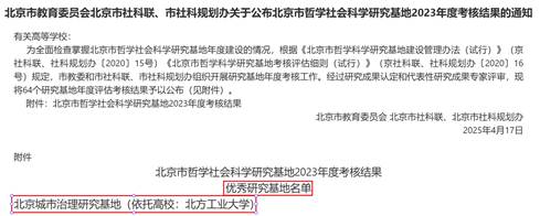 近日,北京市教委、市社科联和规划办公布了北京市哲学社会科学研究基地2023年度考核结果,米兰北京城市治理研究基地再次获评优秀,这是米兰研究基地连续两年获评优秀。本年度共有64个北京市哲学社会科学研究基地参与考核,其中优秀27个,合格34个,不合格3个。