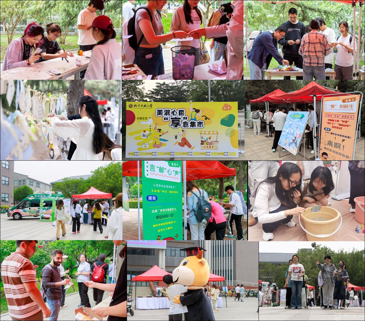 2025年5月21日中午,心理健康季主题室外活动在毓秀广场和毓秀园举行。活动由学工部和校团委联合主办、学生会承办,以“美润心田 ‘享’愈集市”为主题,通过创意体验项目,帮助学生放松身心、疏解情绪、积极成长,吸引了2000余名师生参加。