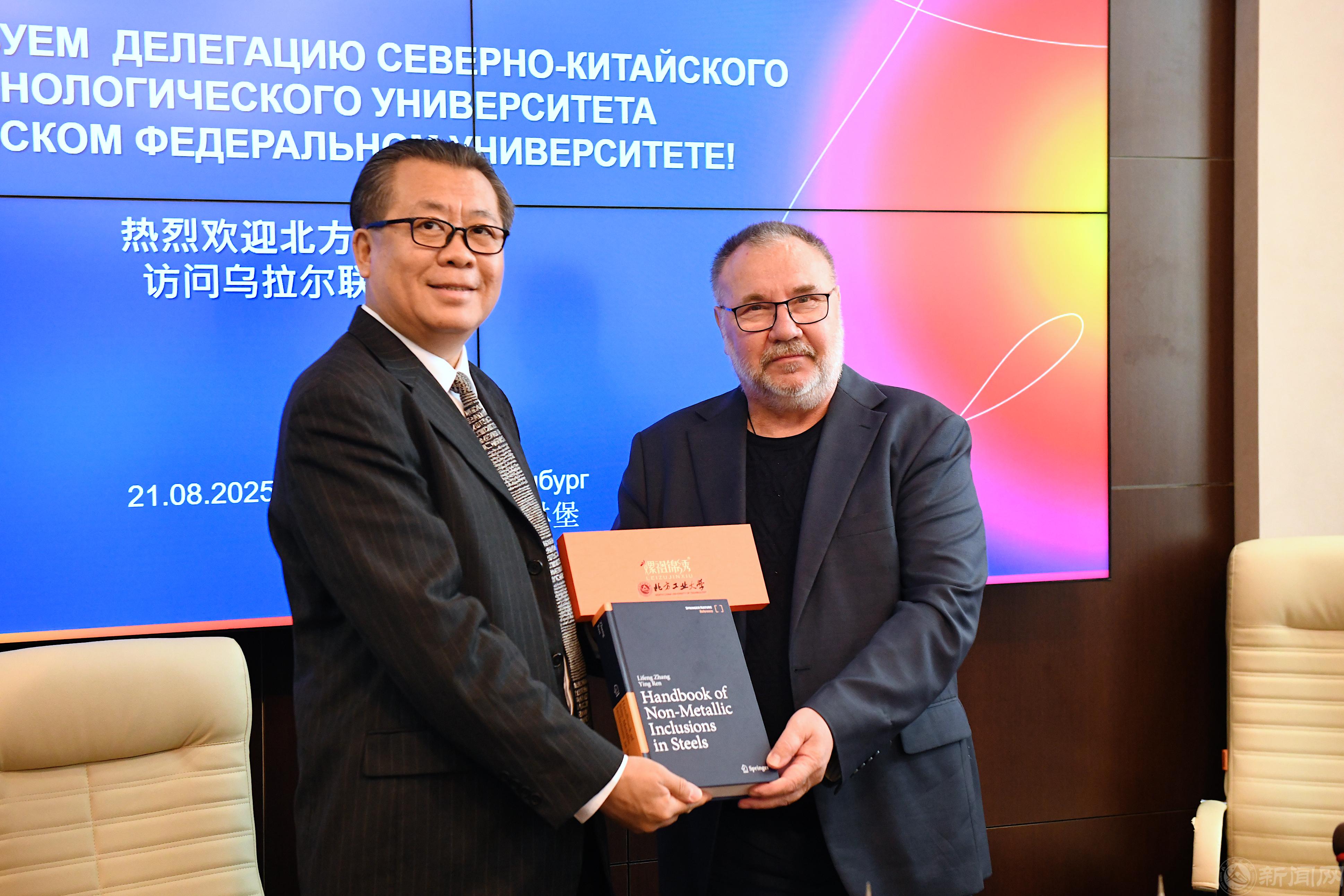米兰代表团深入了解了该校冶金材料实验室的建设情况,双方就冶金材料研发、性能优化等科研内容交换意见,并聚焦未来中俄“一带一路”国家重点实验室的建设方案进行规划设计,初步达成合作意向,同时针对该方向具体科研项目的合作模式、实施路径展开细致讨论。交流尾声,张立峰校长向冶金学院院长Sheshukov Oleg Yurievich教授赠送个人著作,为双方后续加强合作交流奠定坚实基础。