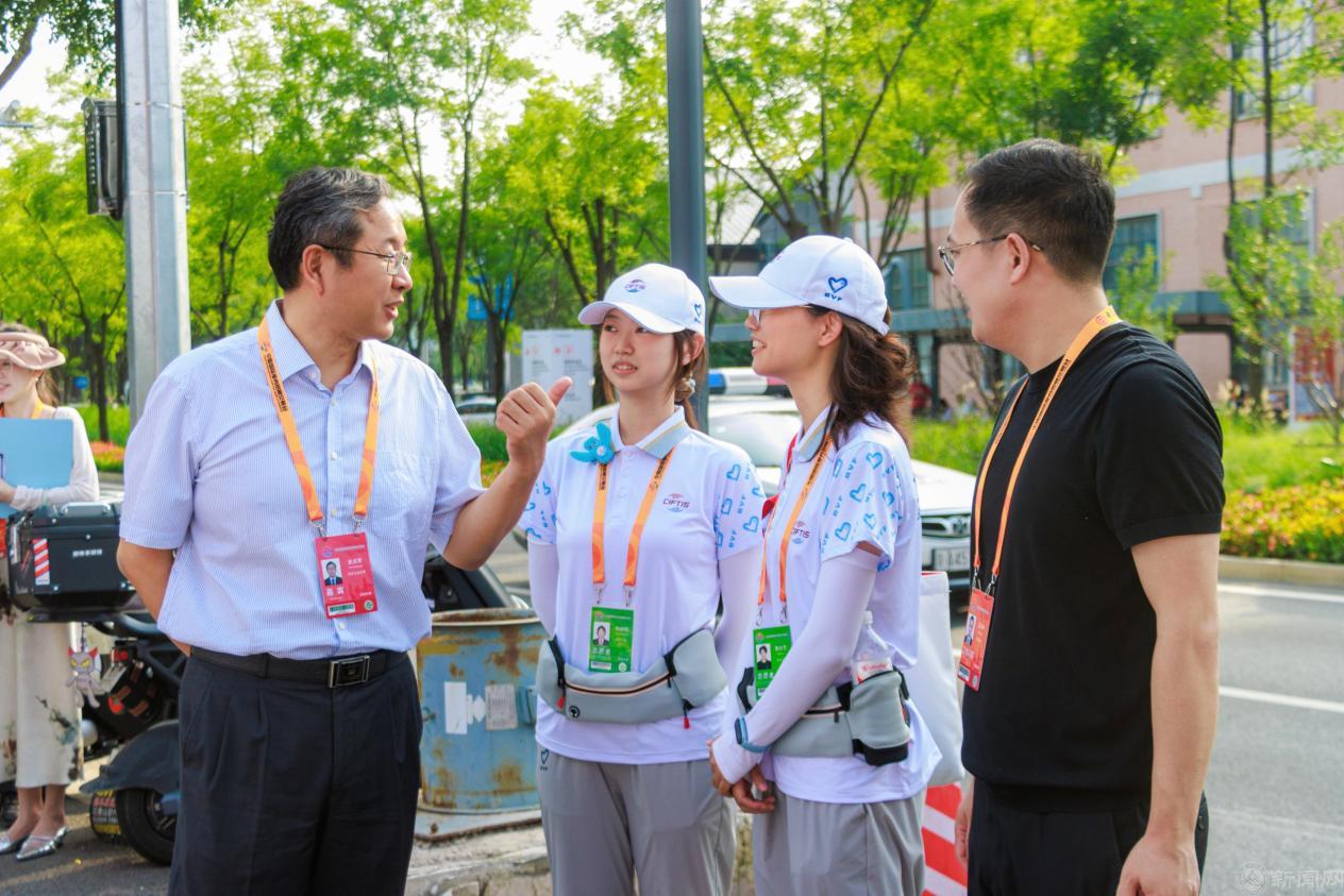 9月11日下午,校党委副书记史贞军同石景山区委副书记张利军到服贸会城市志愿者站点慰问米兰学生志愿者,详细了解了志愿者岗位分工、服务内容、轮班安排以及后勤保障等情况后,史贞军对同学们的辛勤付出给予了高度肯定。