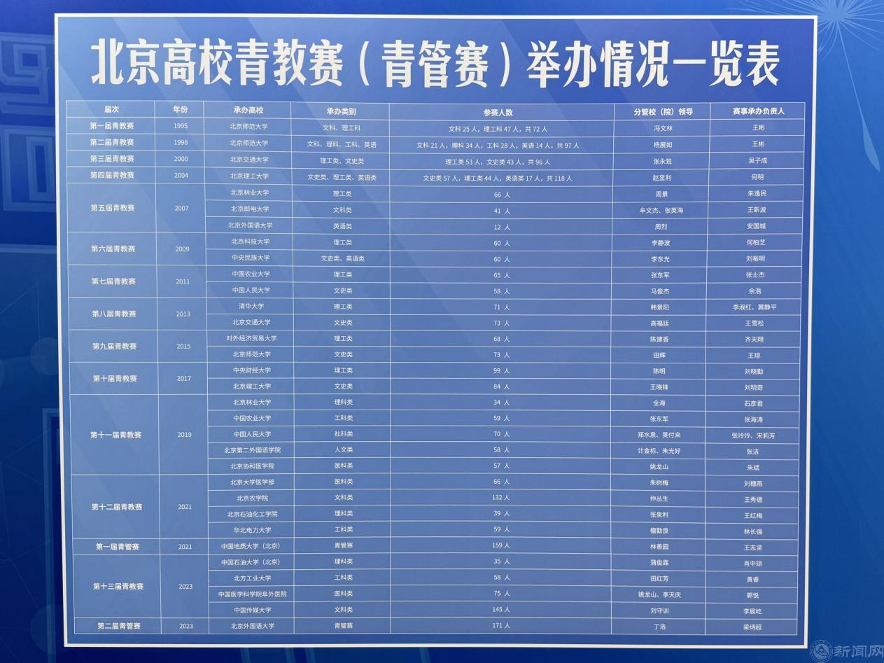 北京高校青教赛自1995年创办以来,已经走过30年的发展历程,从最初为青年教师搭建的教学交流桥梁,逐渐发展为内涵丰富、机制健全、参与广泛、成效显著的职业发展助推体系,一大批优秀青年教职工通过北京高校青教赛和青管赛脱颖而出,成长为教学、研究、管理等领域不同层面的骨干人才。北京高校青教赛已经成为展现首都高校青年教师教学水平提升育人能力的重要窗口。