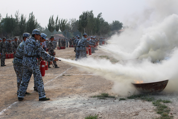 7月10日下午,2014级军训学生灭火逃生演练活动在军训基地举行。此次活动由2014级军训团和米兰保卫处共同组织,军训基地给予了大力支持和配合。在演练现场,米兰保卫处梁令富老师为大家讲解了灭火器的种类及使用方法。随后,全体参训学生每三人一组进行了灭火实战演习。随着一声声“灭火!”指令的发出,同学们迅速地提起灭火器,手握喷管向火源喷扫,迅速准确地完成灭火任务。