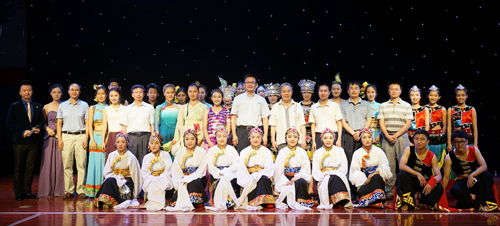2015年6月8日晚,由校团委主办的“校园民族风·舞动中华情”学生民族舞蹈专场演出在学生服务楼多功能厅举行。校党委副书记郭玉良,学生工作部部长李云驰、副部长王静,校团委书记何有华,以及各学院党委副书记、辅导员,离退休老同志代表和学生代表等观看了演出。